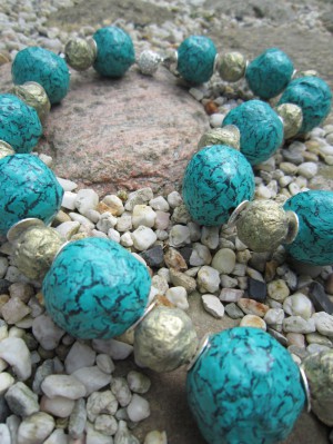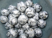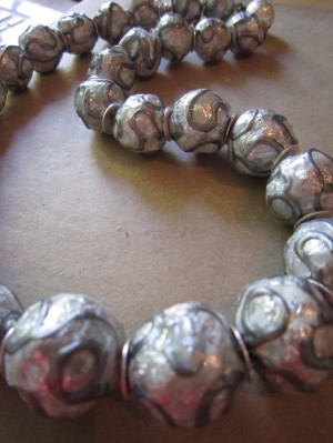 Metal spacers, lentil- and olive-shaped beads from brushed silver