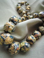 My love for painting, the necessity for creative expression and the desire to create someting beautiful and useful from recycled material fostered Paper Pearls. In my small studio, I make the paper beads from recycled paper, piece by piece and step by step. After adding mild glue, the beads are then hand-rolled, painted with acrylic paints and varnished. Therefore, each bead is different.